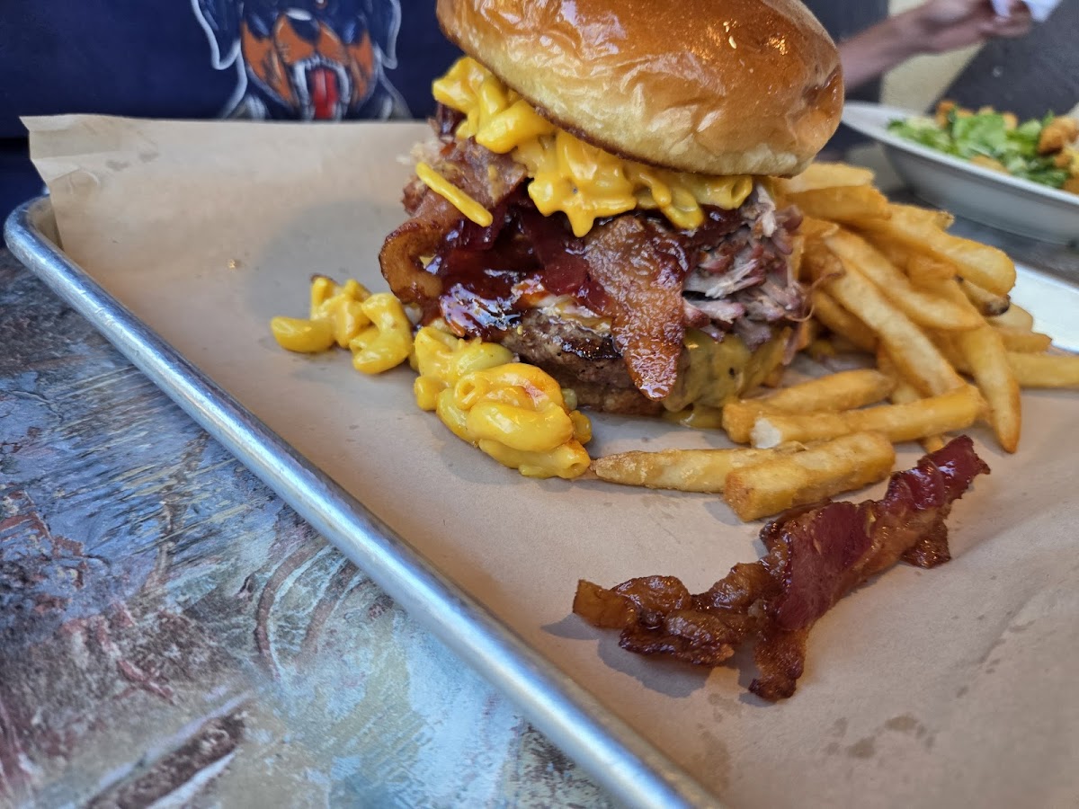 One of the highlights at The Bone Yard is its varied menu that tantalizes the taste buds. Begin with their Chili Bean Soup, a warm and hearty classic that prepares you for the feast ahead. The Cobb Salad is a fan favorite, boasting crisp romaine and iceberg lettuce, flavorful grilled chicken, crispy bacon, creamy avocado, and a decadent bleu cheese crumble, all drizzled with a dressing of your choice for just $17.95. For seafood lovers, the Seared Ahi Tuna & Avocado Salad provides a zesty and fresh option, blending rich flavors and textures that are a delight in every bite.